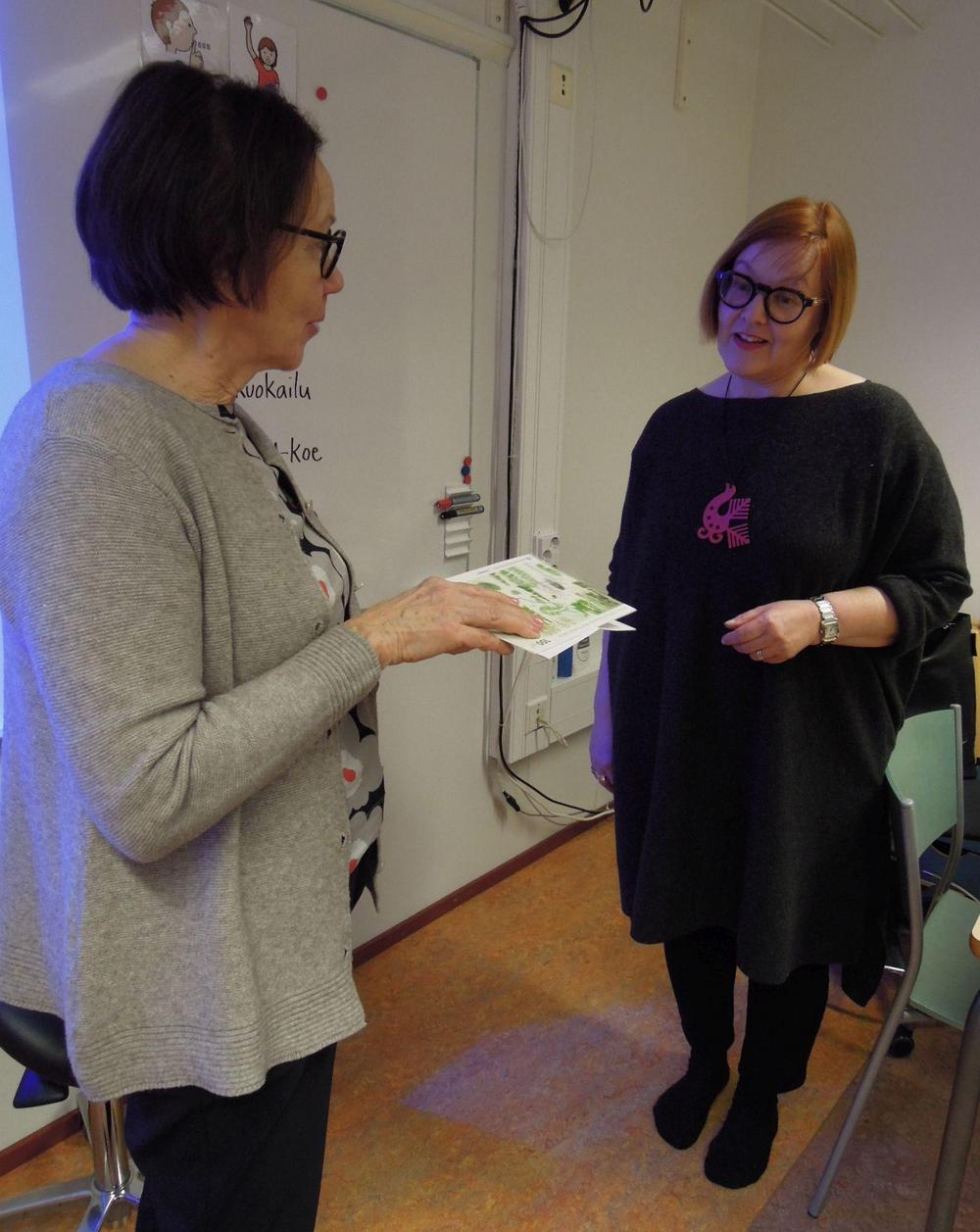 Marttaillassa 11.1. opettajat Pirjo Seppälä ja Anna-Maija Eskola kertoivat osallistumisestaan Rotarijärjestön viiden vuoden projektiin Namibiassa Martti Ahtisaaren Suomi- koulussa.