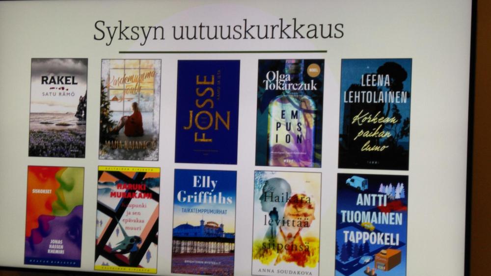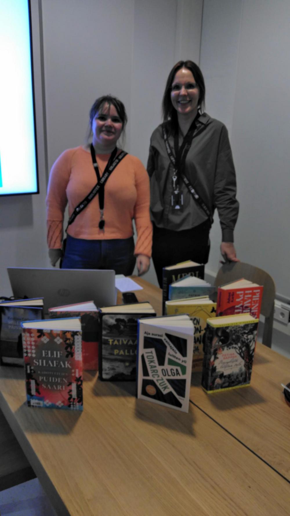 Marttaillassa 3.10. kirjastonhoitajat Sanna Pääkkö ja Emma Tarvainen esittelivät luontokirjoja ja uutuuksia sekä E- kirjastoa.