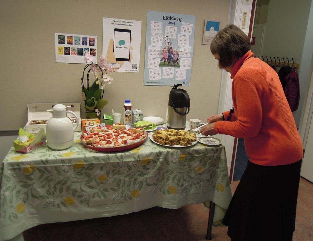 18.12. Kirkkonummen seurakunnan olohuoneessa, Ellenissä, oli hartaushetki ja joulupuurotarjoilu. Heikkilän Martat olivat jälleen valmistamassa ja tarjoilemassa joulupuuron.