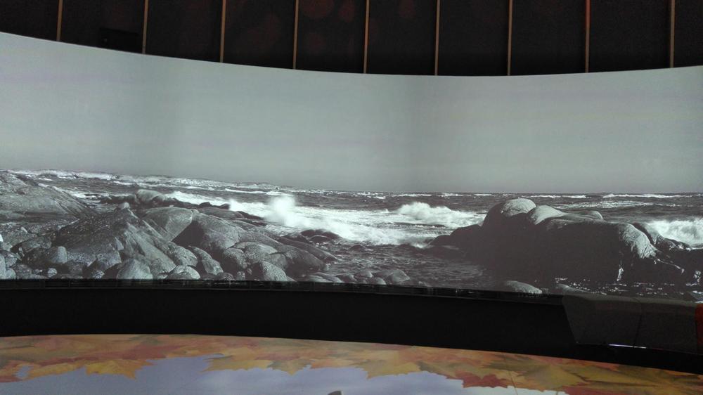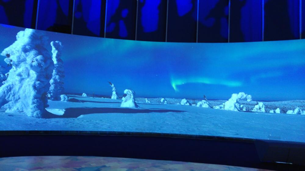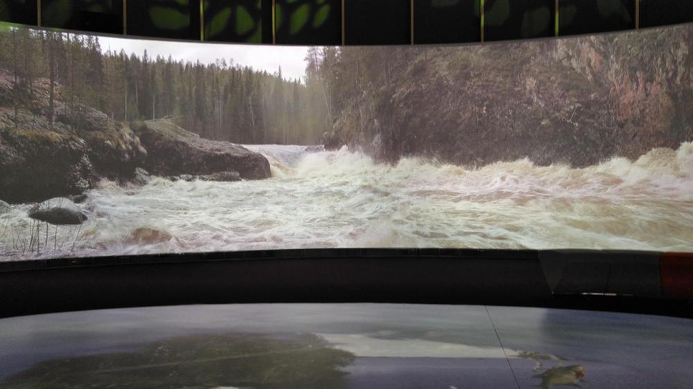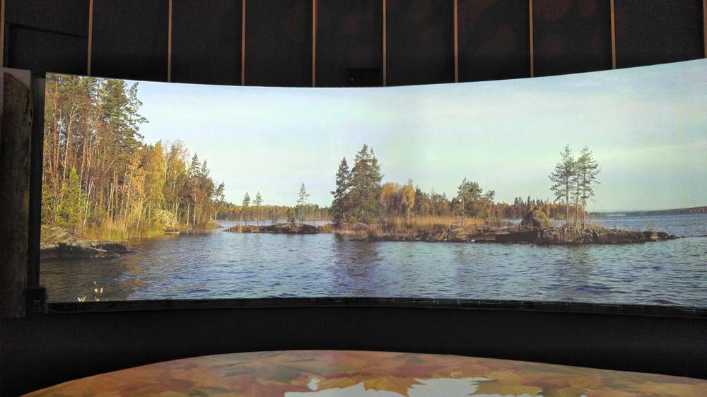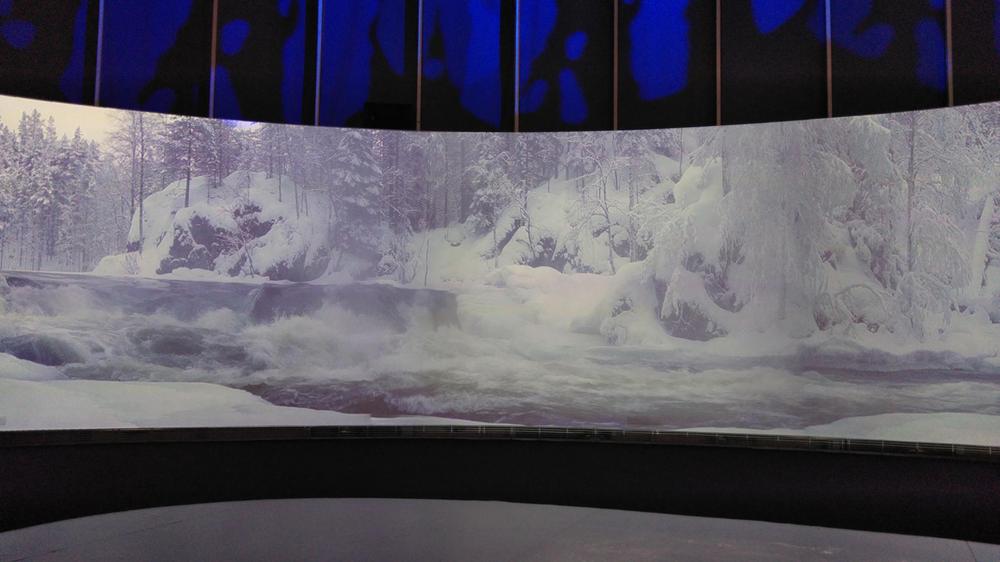 Haltian päänäyttelysalissa on panoraamaesitys "Viisi vuodenaikaa", jossa on kuvia kaikista 41 Suomen kansallispuistosta.