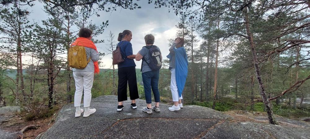 Kahden sadekuuron välissä kävelimme noin kolme kilometriä. Menninkäisenpolun näköalatasanteelta oli hienot näkymät Pitkäjärven ympäristöön. Ilma oli raikas ja tuoksui mäntymetsälle. Taustamusiikkina oli ukkosen jyrähdykset jossain kaukana.