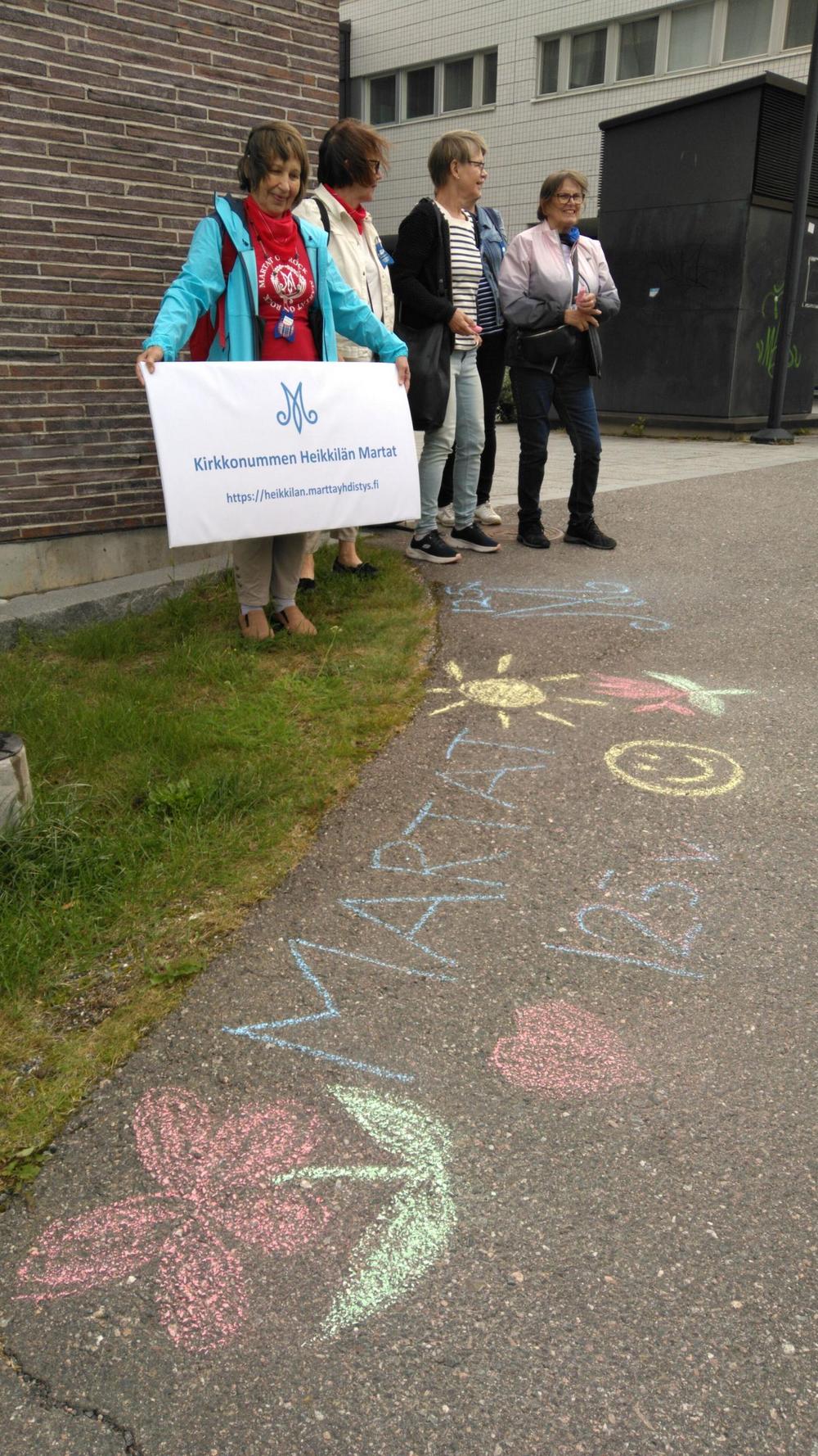 24.8. "ajettiin" marttaralli. Liitosta tuli uusi tehtävä noin puolen tunnin välein ja osallistujat tekivät ohjeiden mukaan. Emme osallistuneet jokaiseen "pikataipaleeseen", jätimme pois rahankeruun marttametsää varten ja marttalaulun. Kirkkonummipäivät sattui samaan aikaan joten saimme huomiota. Jaoimme esitteitä syksyn ohjelmasta, asiasta kiinnostuneita löytyi.