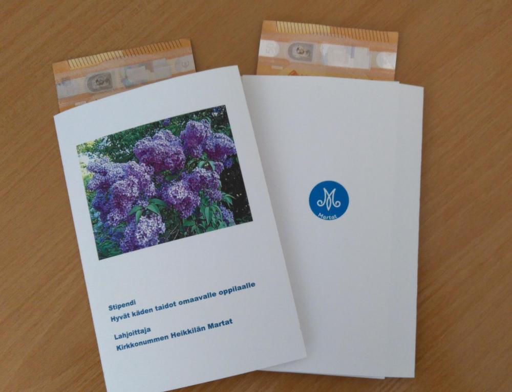 Perinteiseen tapaan Heikkilän martat antoi stipendit Heikkilän ja Laajakallion kouluun hyvät käden taidot omaavalle oppilaalle.