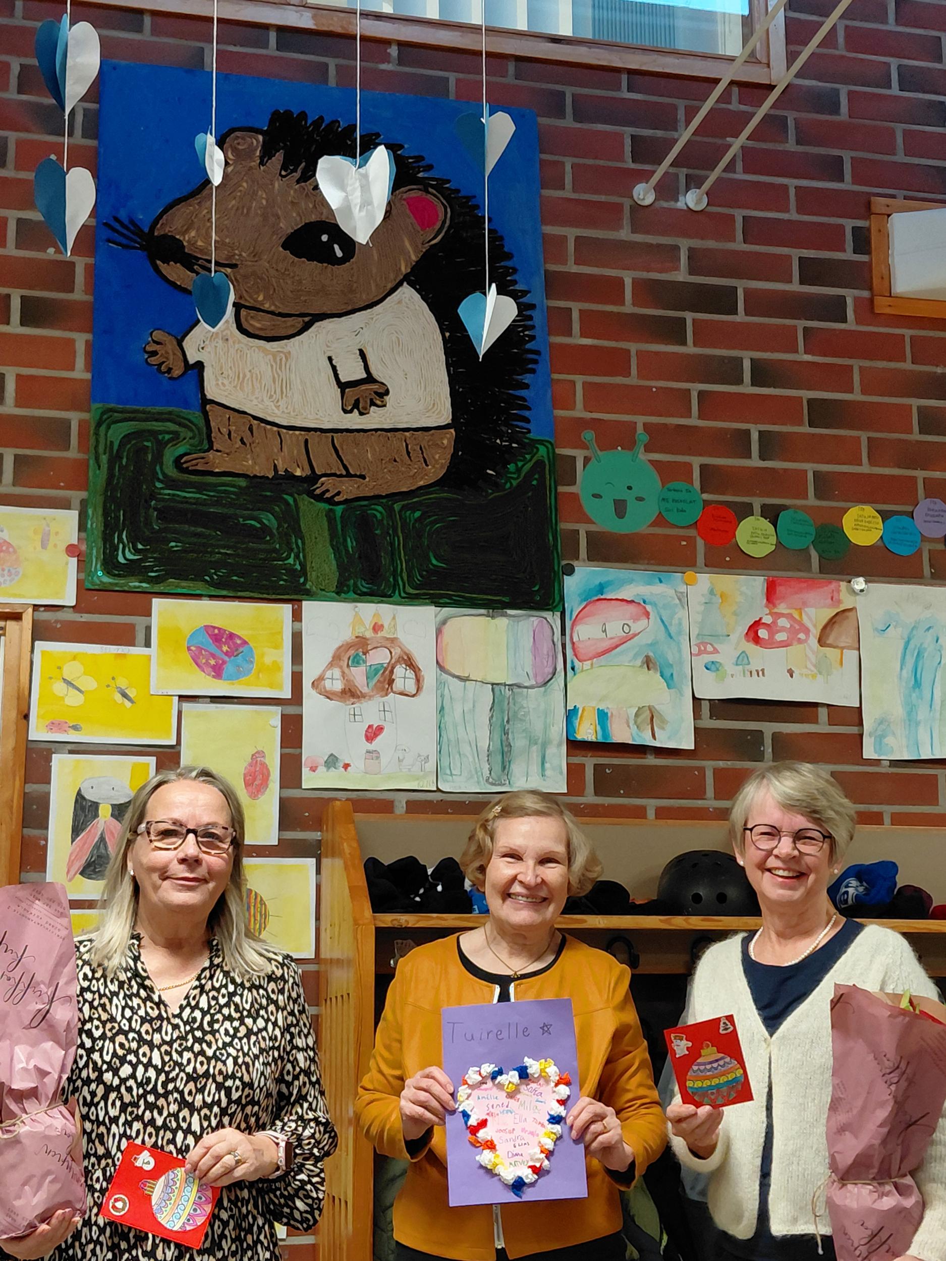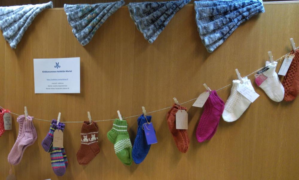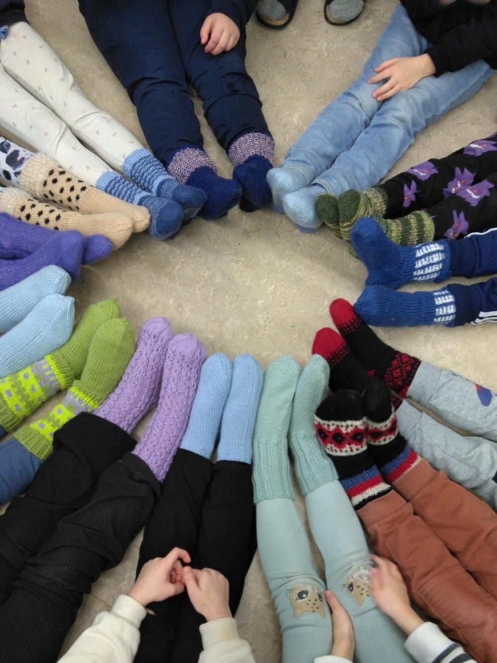 Heikkilän koulun ekaluokkalaiset saivat perinteiseen tapaan martoilta villasukat talvilomaa edeltävällä viikolla. Oppilaat piirsivät jalan ääriviivat paperille ja kirjoittivat lempivärinsä. Näin jokainen sai mieluisat sukat. Hannele- koulumummi lausui lapsille sukkarunon.