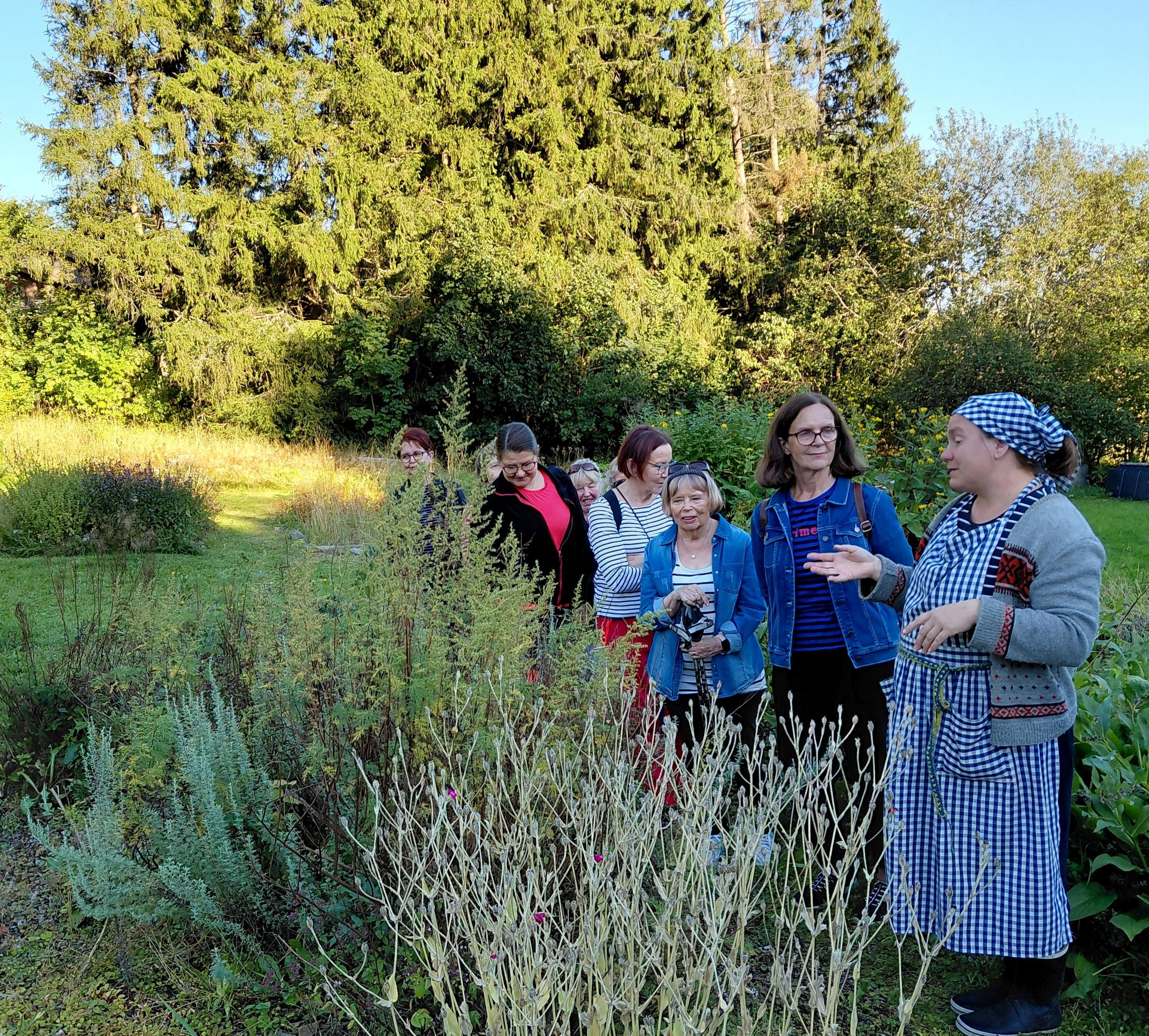 Syyskauden ensimmäinen marttailta vietettiin Ragvaldsin museoalueella. Paikan puutarha-museoapulainen Reetta Kandolin kertoi alueen historiasta, hyvästä paikasta Kuninkaantien varrella ja alueen päätymisestä Kirkkonummen kunnan omistukseen. Päärakennuksesta on saatavissa mielenkiintoinen historiikki, kannattaa käydä ensi kesänä niidenkin jotka eivät tällä kertaa päässeet mukaan.