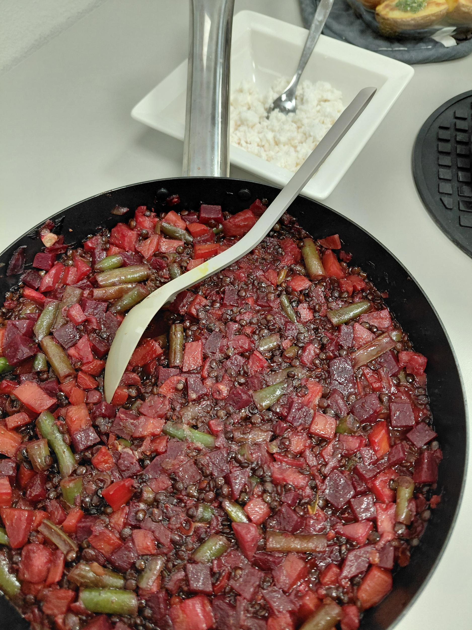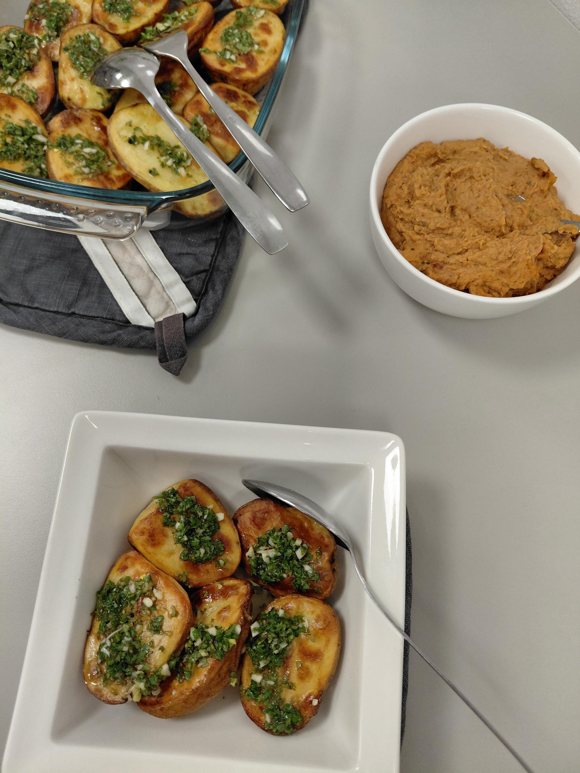 23.3. ruokakurssilla Porkkalan marttojen ruokamartat Merja ja Tuija opastivat meitä uusiin papu- ja perunaruokiin. Nam!