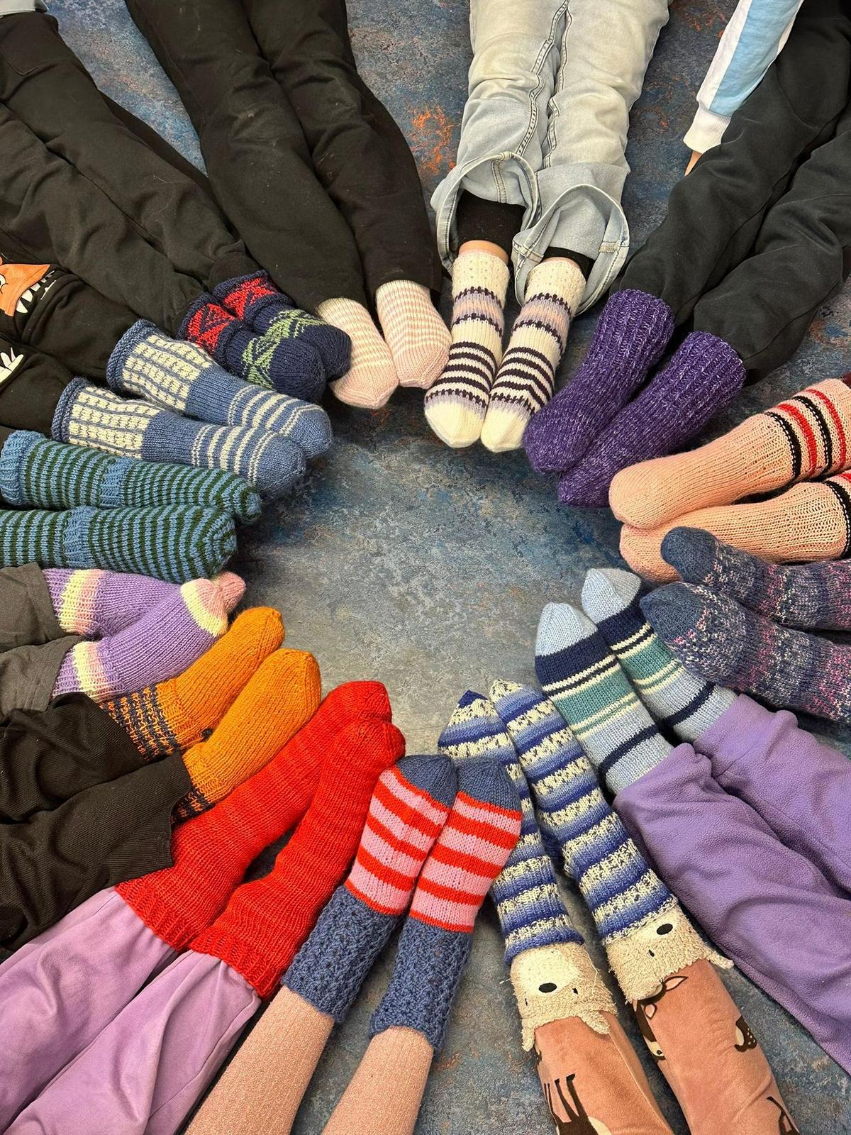 Tänä vuonna oli Laajakallion koulun ekaluokkalaisten vuoro saada Heikkilän Marttojen neulomat villasukat.